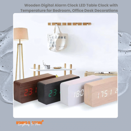 Wooden Digital Alarm Clock LED Table Clock with Temperature for Bedroom Office Desk Decorations
